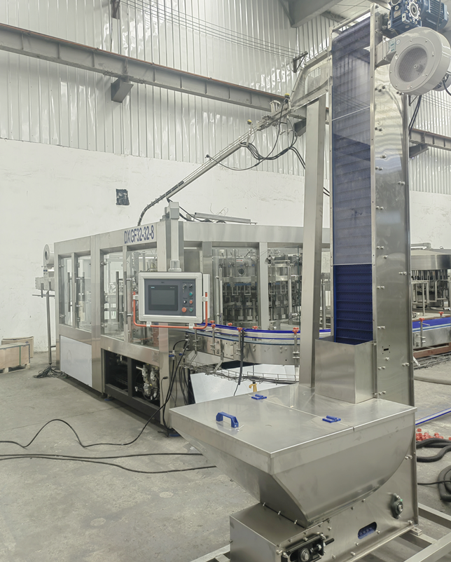 The operational efficiency of a production line is significantly influenced by the configuration of the conveyor line. This configuration must consider the occasional short-term shutdown of rear-end equipment, such as for label replacement, ensuring that the shutdown does not impact the operation of the front-end equipment. It should also facilitate seamless connection between the front and rear equipment to achieve high overall production line efficiency. Our production line layout is meticulously designed, taking into account the balance between customer investment and production line efficiency. Leveraging advanced global technology, we achieve the specified requirements. The mechanical structure boasts a new design, with components primarily formed through stamping or bending, offering advantages such as excellent rigidity, light weight, and interchangeability. The transmission method ensures reliable operation and convenient maintenance, suitable for conveying bottles with diameters ranging from Ø40 to Ø110mm. The electric control system, utilizing PLC on the rinsing-filling-capping tri-block, governs the operation of the entire container conveying buffer system. It automatically handles functions such as running speed acceleration, deceleration, and automatic buffering.